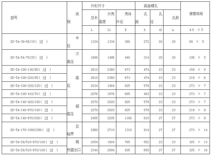④原有的排汽管外徑、壁厚;